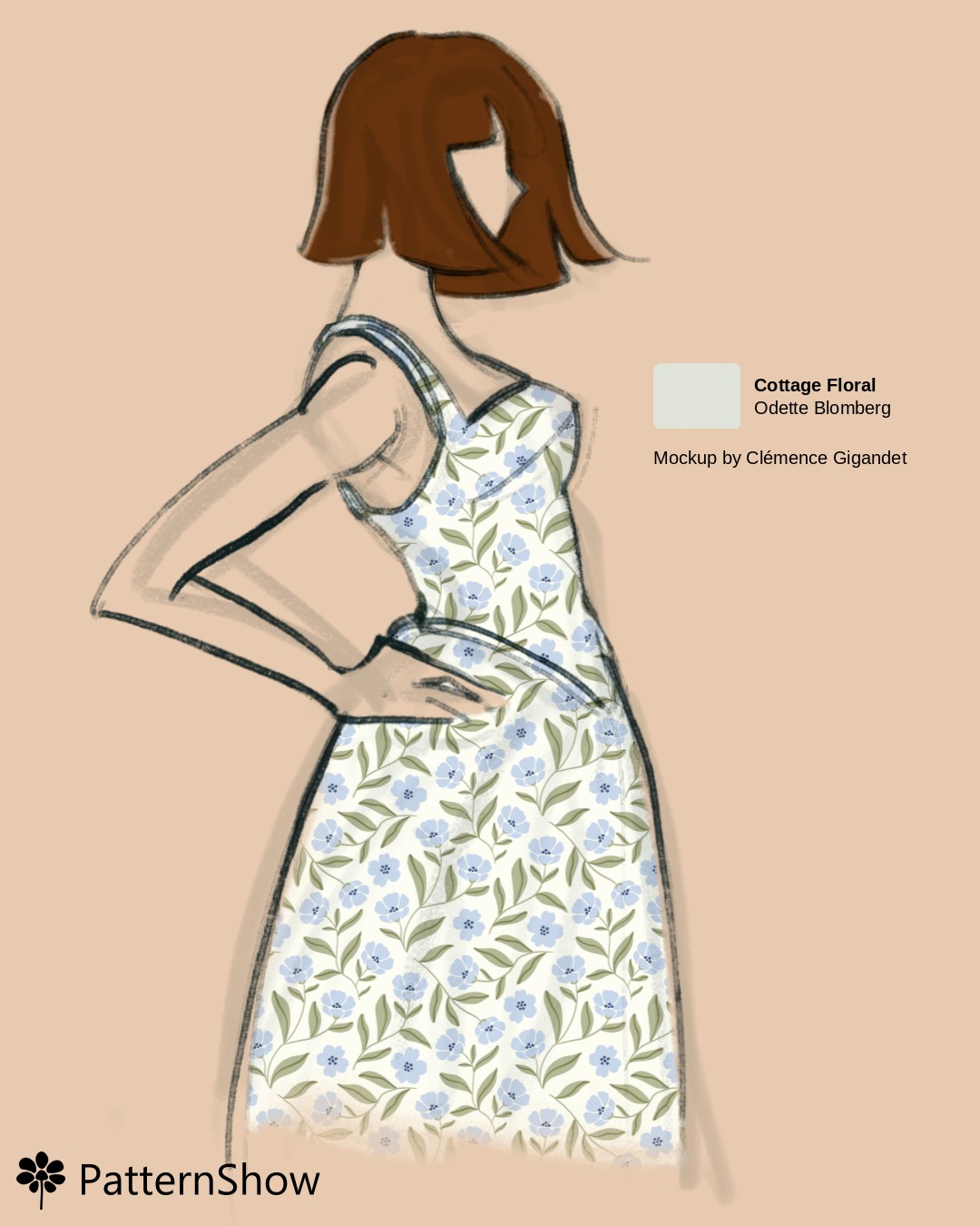 Woman with Summer Dress Side View with Baby powder, Beau blue, Sage