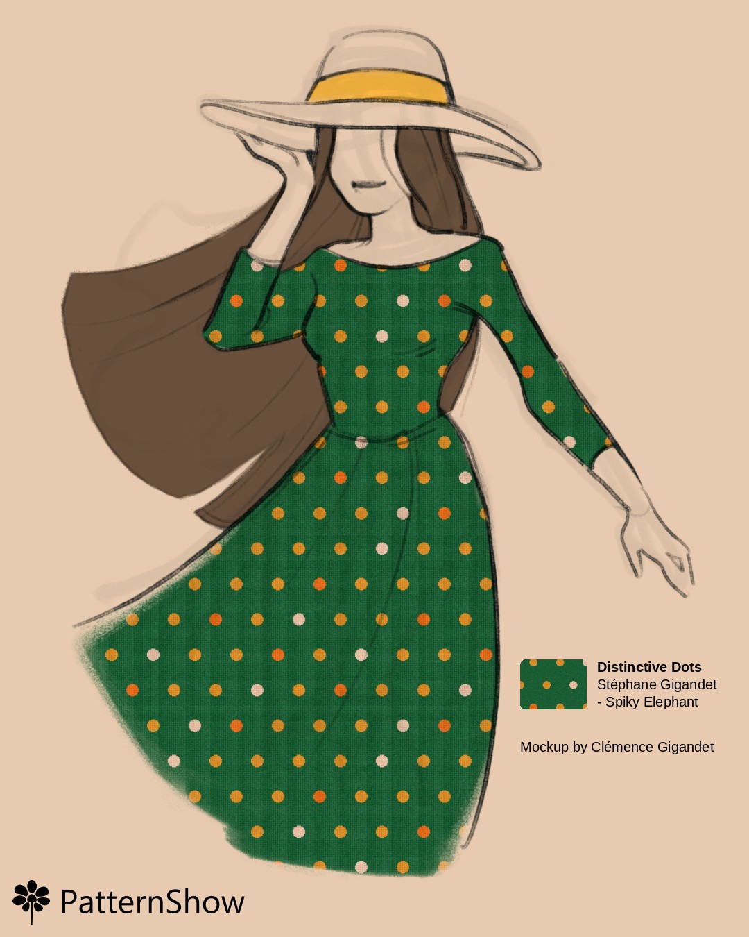 Woman in Dress and Hat with Forest green