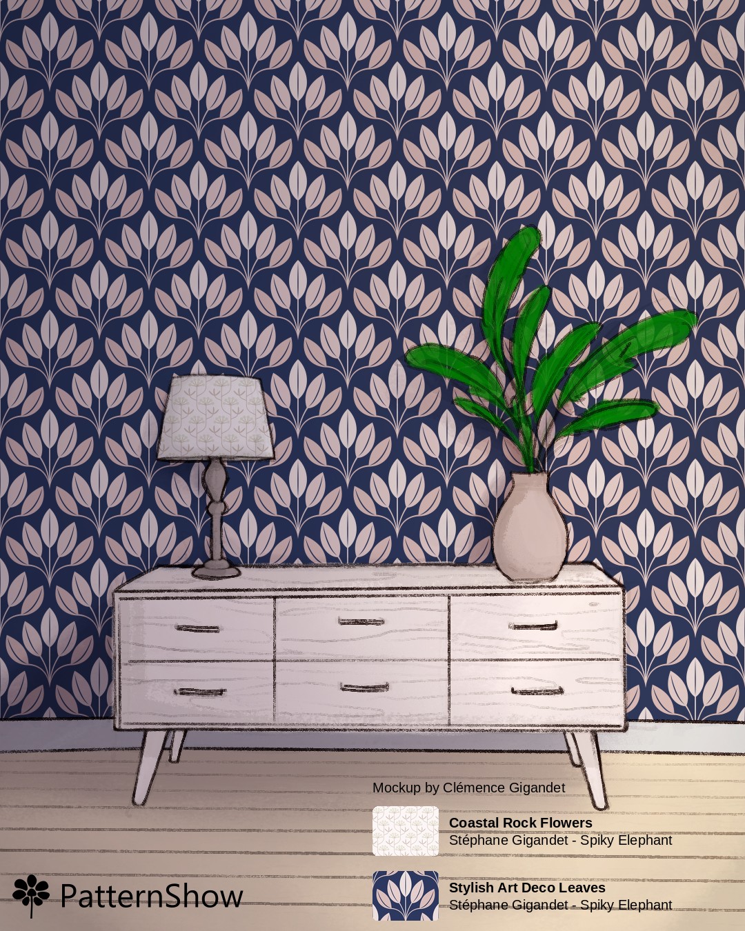 Living Room with Dresser, Plant and Lamp with Deep koamaru, Dust storm, Champagne pink