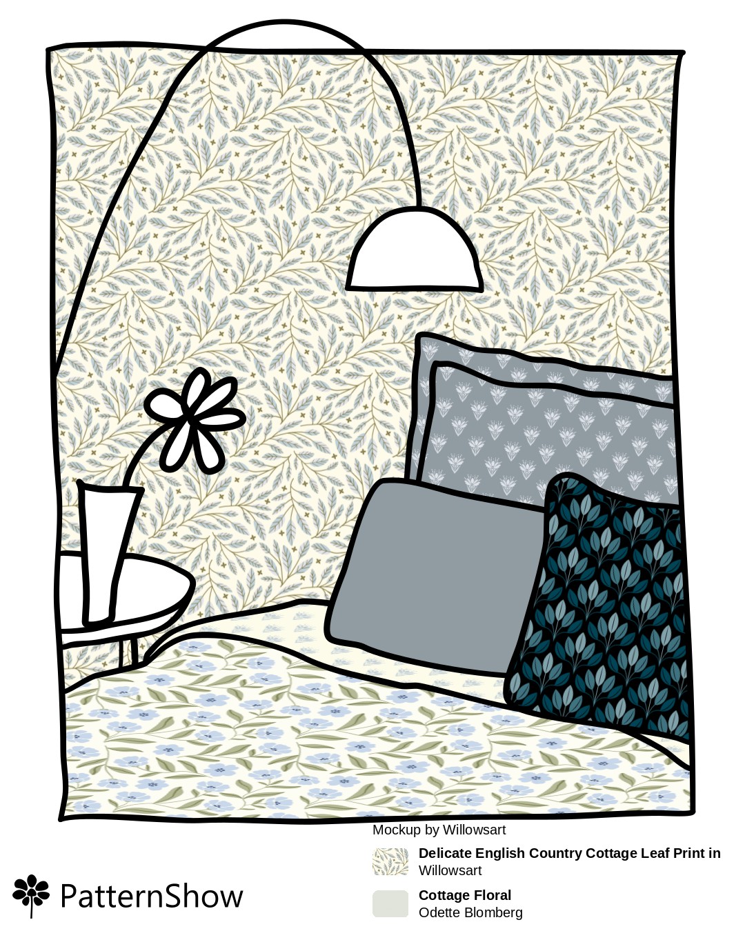 Bedroom with bedding set with Old lace, Pastel blue, Roman silver