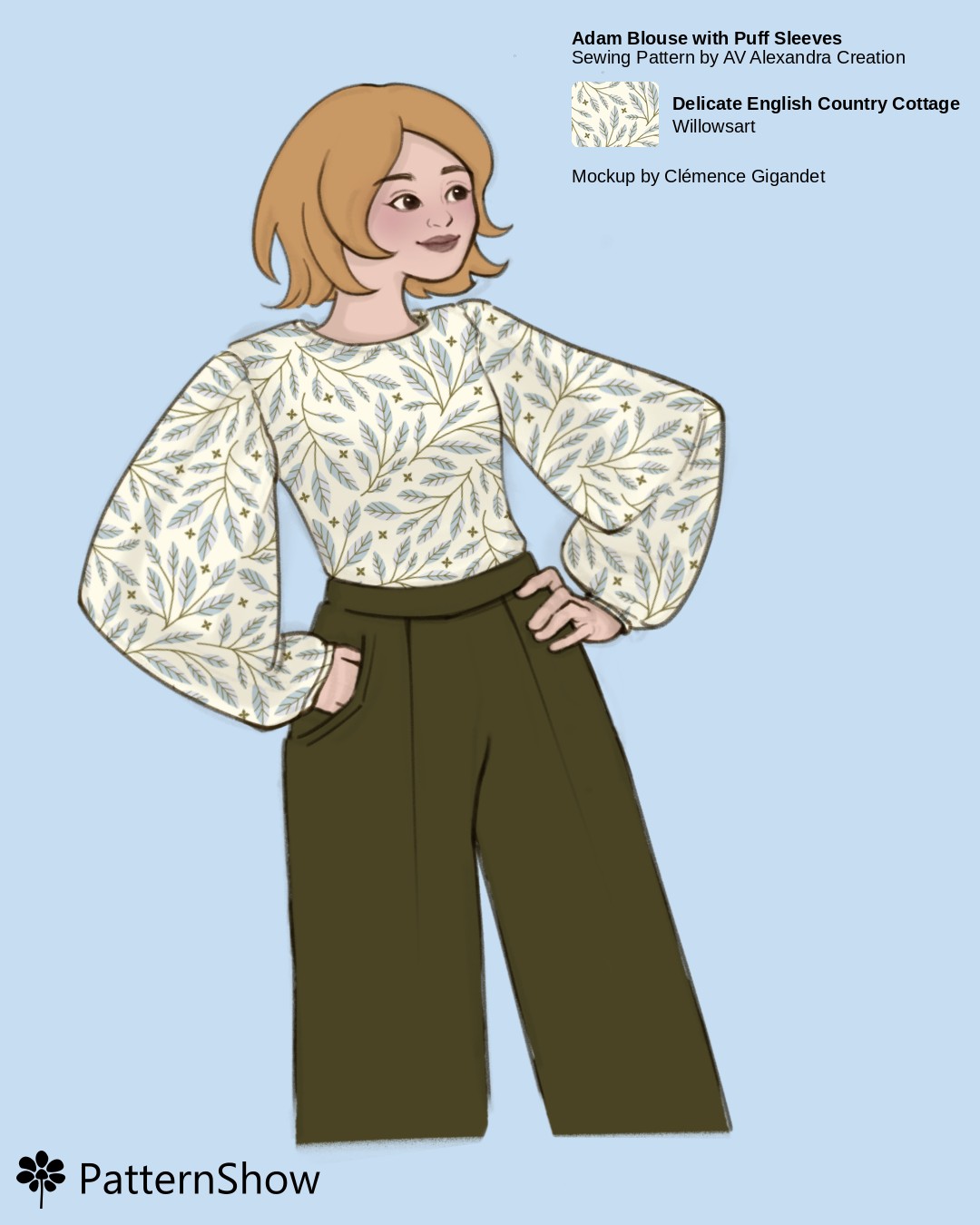Adam Top with Puff Sleeves with Old lace, Pastel blue, Anti-flash white