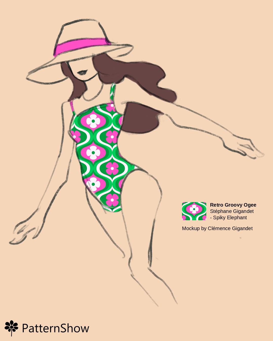 Woman in Swimsuit and Hat with Green, Pink lace, Purple pizzazz