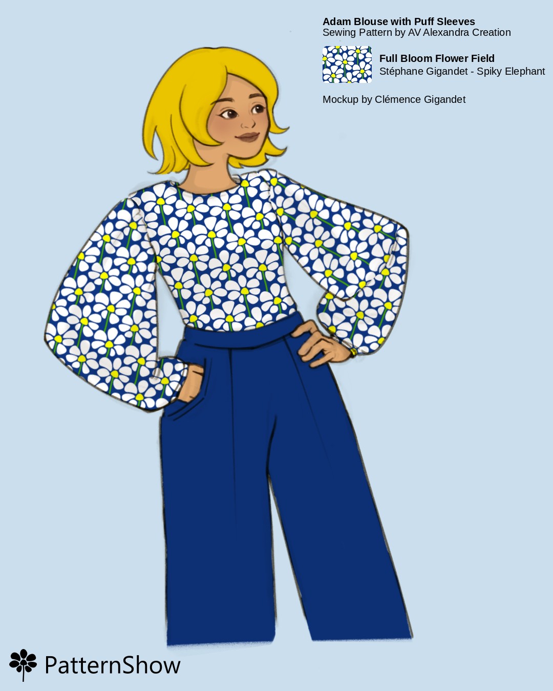 Adam Top with Puff Sleeves with White, Yale Blue, Canary yellow