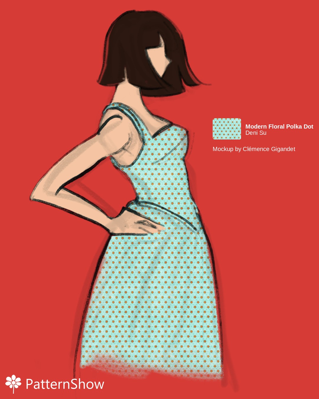 Summer Dress with Modern Floral Polka Dot Forget Me Not Flowers Fabric in Aqua