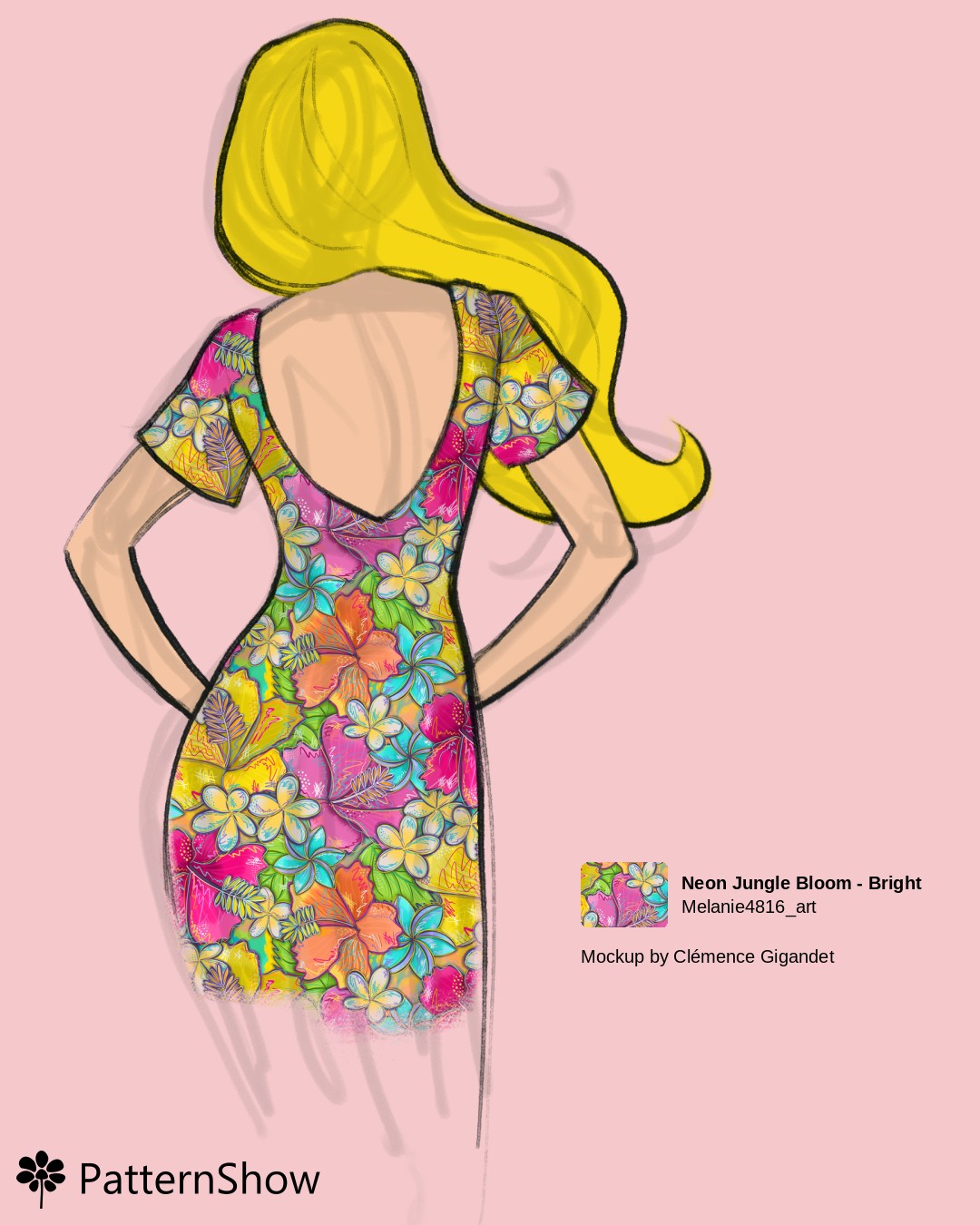 Woman with a Cocktail Dress, Back View with Raspberry pink, Rajah, Brilliant rose