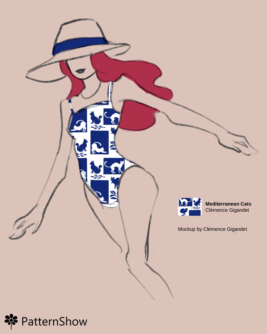 Mediterranean Cats Blue and White Swimsuit