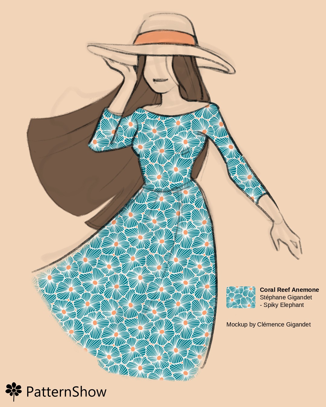 Teal and Coral Anemone Flowers Dress